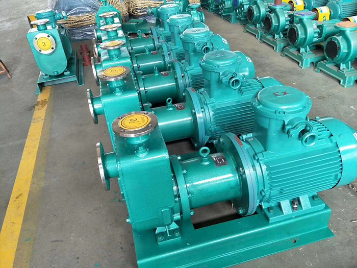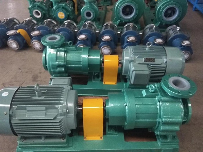 高溫磁力驅(qū)動(dòng)離心泵(簡(jiǎn)稱高溫磁力泵)通常由電機(jī),磁力偶合器,水冷卻裝置和耐腐蝕離心泵四大部分組成,其主要特點(diǎn)是利用磁力偶合器傳遞動(dòng)力。當(dāng)電動(dòng)機(jī)帶動(dòng)磁力偶合器的外磁鋼旋轉(zhuǎn)時(shí),磁力線穿過間隙和隔離套,作用于內(nèi)磁鋼上,使泵轉(zhuǎn)子與電動(dòng)機(jī)同步旋轉(zhuǎn),無機(jī)械接觸地傳遞扭矩。在泵的動(dòng)力輸入端,由于液體被封閉在靜止的隔離套內(nèi),沒有動(dòng)密封因而無泄漏。磁力偶合器的磁性材料采用耐高溫型稀土永磁材料,能承受280度以下的高溫介質(zhì)而保持強(qiáng)大的磁力扭矩。在電機(jī)與磁力偶合器之間加裝了水冷卻裝置,防止泵送高溫介質(zhì)之熱量傳導(dǎo)至電機(jī),以保持電機(jī)的正常運(yùn)行,從而達(dá)到無泄漏輸送高溫介質(zhì)。