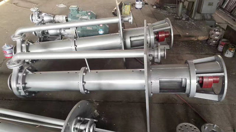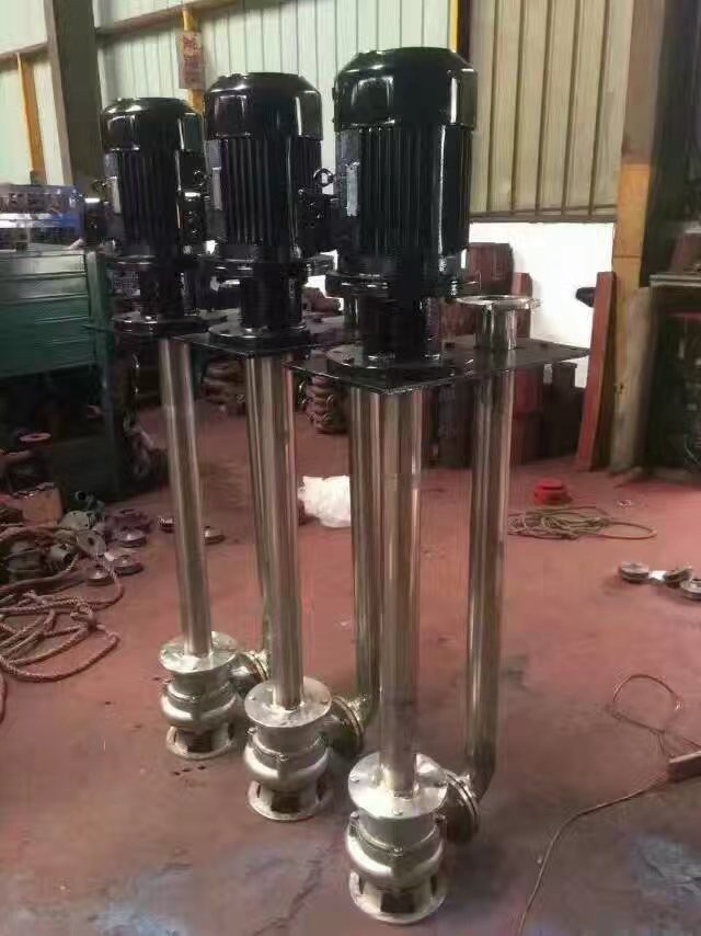 液下化工泵的形式為長(zhǎng)軸立式離心泵,與介質(zhì)接觸部分采用鑄鋼或不銹鋼制造,根據(jù)客戶要求液下深度由0.5m-6m不等,工作部分淹沒(méi)與液體中,具有使用范圍廣,效率高,無(wú)需灌液即能輸送,由于泵運(yùn)轉(zhuǎn)產(chǎn)生的軸向力及徑向力分別由液上部分的滾動(dòng)軸承和液下的滑動(dòng)軸承支撐,因此運(yùn)行寧?kù)o無(wú)噪音,是集環(huán)保節(jié)能的高科技產(chǎn)品。